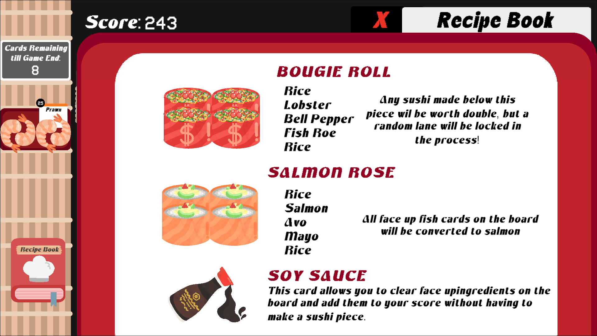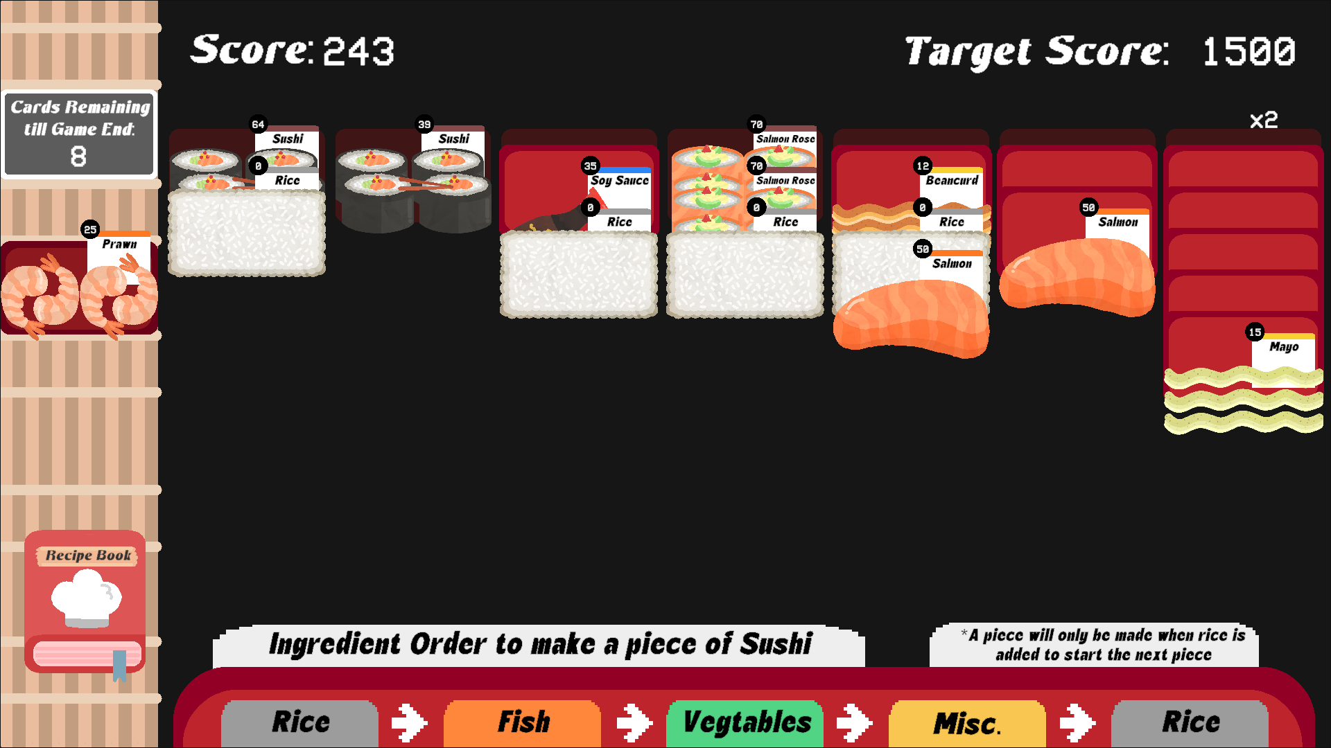 Enjoy a chill solitaire-inspired game where you create sushi to score points.